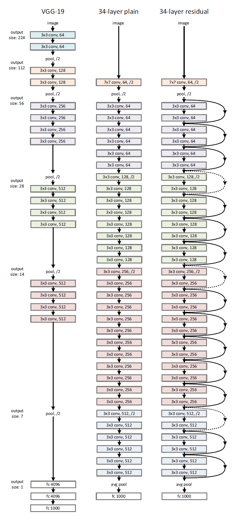 Plain/residual 구조는 Fig 3.의 중간/우측을 사용했다.