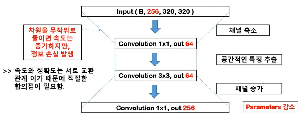 Bottleneck layer를 더 많이 사용해서 만들었다.