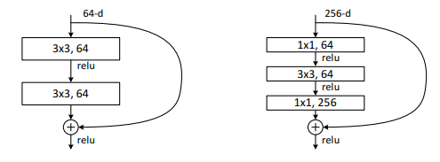 Parameter-free identity shortcut은 bottleneck 구조에서 계산량 줄이기와 모델 사이즈 축소에 중요하다. 만일 projection shortcut을 사용했다면 그 크기와 복잡도는 2배로 늘었을 것이다. 왜냐하면 shortcut이 두 개의 높은 차원 간에 연결되어 있기 때문이다.