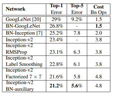 Label Smoothing, Factorized 7x7, BN-auxiliary(BN이 conv뿐만 아니라 FC에도) 등이 적용된 것이다.