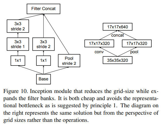 이를 위해 두개의 평행한 stride 2 block을 쓴다. P와 C로 block을 지칭하는데, P는 pooling(maximum or average), C는 conv이다. 둘다 stride 2이며 Figure 10처럼 concatenate된다.